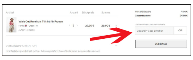 Wie verwende ich den GREEN SHIRTS Gutscheincode?