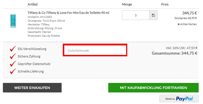 Im Online-Parfümerieshop gibt es immer wieder neue Rabatte und Gutscheine zu entdecken. Willst du keine Aktion verpassen? Melden Sie sich einfach für den Newsletter an.
