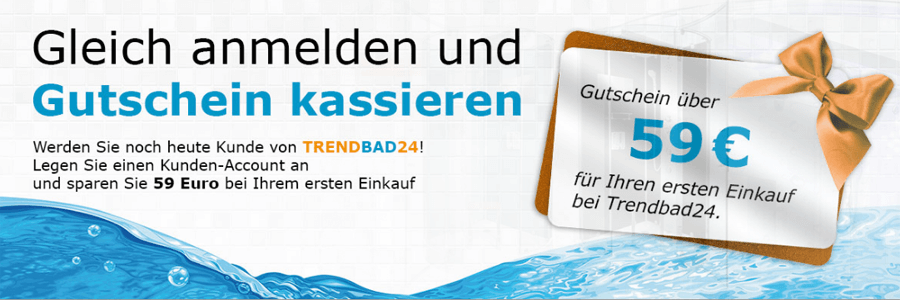 Trendbad24 ist der Online-Shop, wenn es um die Gestaltung Ihres Badezimmers geht. Duschen, Badewannen und sogar Badmöbel machen das Angebot von Trendbad zu Ihrem absoluten Lieblingsplatz. Die Qualität stimmt hier ebenso wie der Preis und auch der Service ist für ein Online-Unternehmen ersichtlich. Wenn es Zeit für eine kleine Renovierung in Ihrer Wohnung ist, bestellen Sie noch heute mit einem Gutschein von Trendbad24 alles für Ihr Traumbad. Die Badutensilien aus dem Online-Shop von Trendbad24.de überzeugen durch ihr hochwertiges Design für ein ansprechendes Badambiente zum Wohnen sowie eine hervorragende Verarbeitung, damit Sie lange Freude an Duschen, Bädern und Pools haben. Es ist Trendbad24 egal, ob Sie zum Beispiel Duschkabinen, Duschtempel, Duschen, Gartenduschen, Pools, Sitzbäder oder Dampfduschen und Badzubehör zu äußerst günstigen Preisen suchen. Bei Trendbad24.de können Sie Ihre Bestellung von Duschen, Dampfduschen, Duschtempeln, Duschkabinen, Badewannen oder Pools bequem und sicher auf Anfrage per Visa und Mastercard Kreditkarte, Nachnahme, Billsafe Rechnung, Giropay oder Paypal bezahlen. Nutzen Sie jetzt einen aktuellen Trendbad24-Gutschein und sichern Sie sich attraktive Vorteile. Mit einem Trendbad24-Gutschein von Gutscheinkiller.de machen Sie Ihre Badeoase noch günstiger!