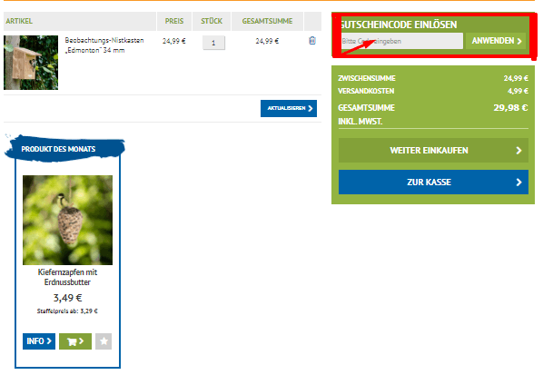 Vivara Geschenkgutscheine sind für Tier-, Natur- und Gartenfreunde immer ein willkommenes Geschenk, denn im Onlineshop können auch Ferngläser, Pflanzen, Teleskope und vieles mehr bestellt werden. Wenn Sie den vivara-Gutschein hinzufügen, erhalten Sie einen einmaligen Rabatt. Dieser finanzielle Vorteil gilt nicht nur für bestehende Kunden. Für weitere Schnäppchen wie den vivara-Gutscheincode können Sie ihn mit dem kostenlosen E-Mail-Newsletter nach Hause schicken. Es gibt auch einen übersichtlichen Katalog, den Sie kostenlos nach Hause bestellen können. Dort können Sie nach Belieben wählen und die Bestellnummern in das rechte Feld auf der Website eingeben. Sie erhalten den gewünschten Artikel bereits und können ihn in den Warenkorb legen.